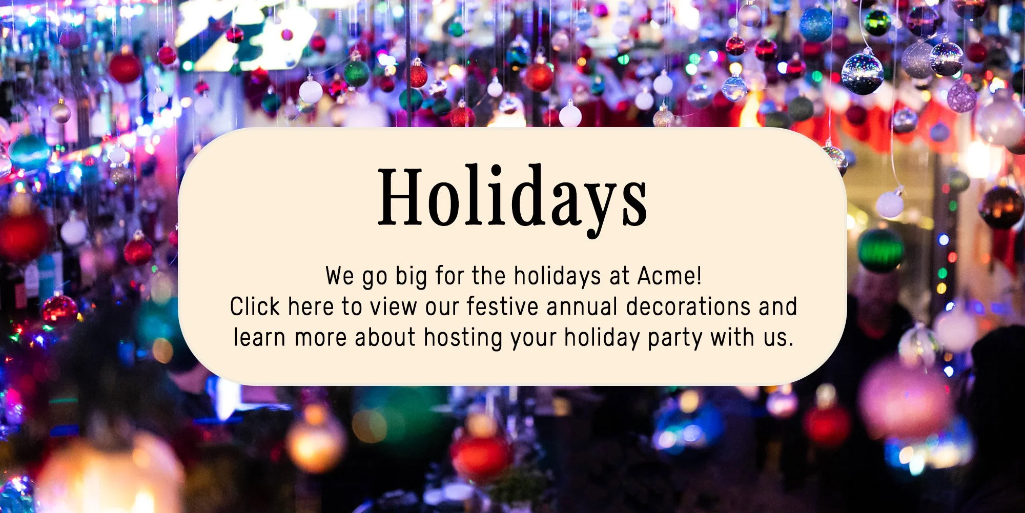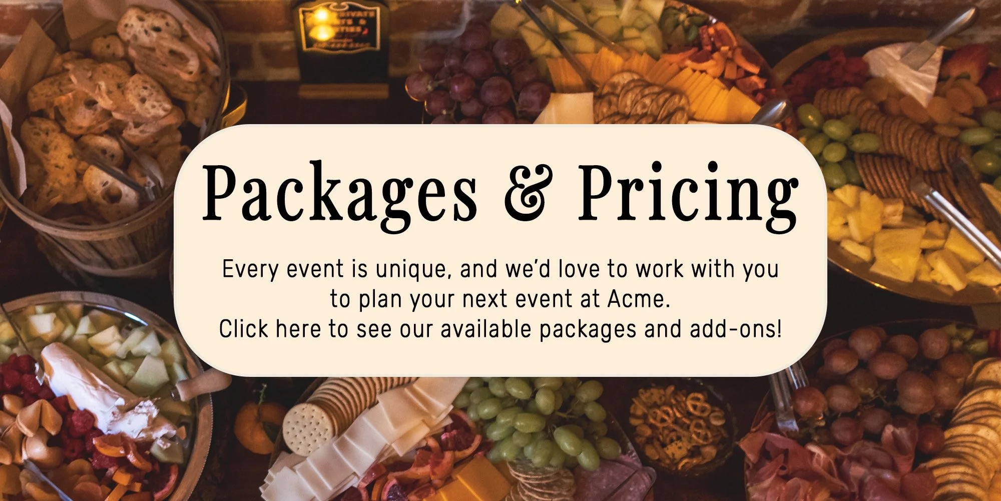 Acme Bar & Company offers full private event services, with many options to fit most budgets. (We even have a ZERO cost option!) We offer fully customizable events services for both large and small groups.